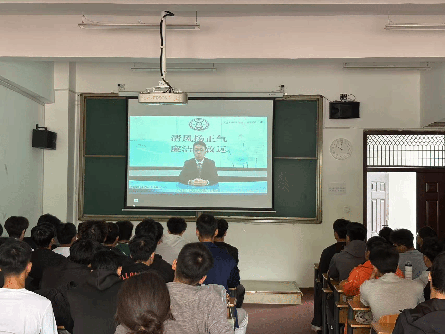 为持续推进校园廉洁文化建设,教育引导大学新生筑牢廉洁底线,弘扬清风正气,不断提高青年学生遵纪守法、诚实守信、尚廉践廉的思想自觉和行动自觉,根据学校纪委工作要求,体院学院于10月13日在主体106教室组织开展了 “廉政课堂・廉洁第一课”新生廉洁教育活动。