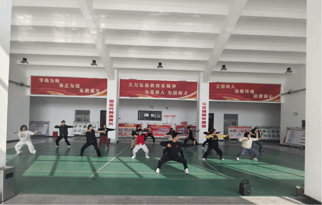 本次活动邀请武术健将李鑫志老师担任教练。李老师首先对八段锦的文化渊源与养生功效进行了讲解,再逐一示范八个核心动作、拆解要领与呼吸技巧,并细致纠正动作偏差。活动按理论讲解、动作示范、分组练习、总结交流有序进行。女教职工们精神饱满、练习专注,现场氛围轻松愉悦,展现了积极向上的精神风貌。