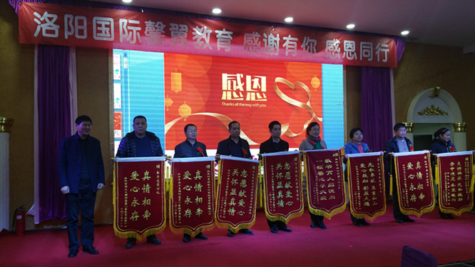 2016年11月30日,洛阳国际馨翼教育中心“感谢有你,感恩同行”答谢会在洛阳市泰丰园举行,我院党委副书记杨洪老师受邀出席本次答谢会。我院党委副书记杨洪老师陪同老师、家长、孩子以及社会各界爱心人士和团体观看了洛阳国际馨翼教育中心老师和孩子们精心准备的节目,接着洛阳市西工区国际馨翼儿童启智中心主任王普宣向我院赠送的“志愿献爱心,关怀显真情”锦旗一面,感谢志愿者们孩子们的关心与照顾,我院党委副书记杨洪老师代表学院受旗,活动最后还和孩子们一起绘画,爱意浓浓,最后还接受河南电视台大象直播间—城市之窗栏目组的采访。