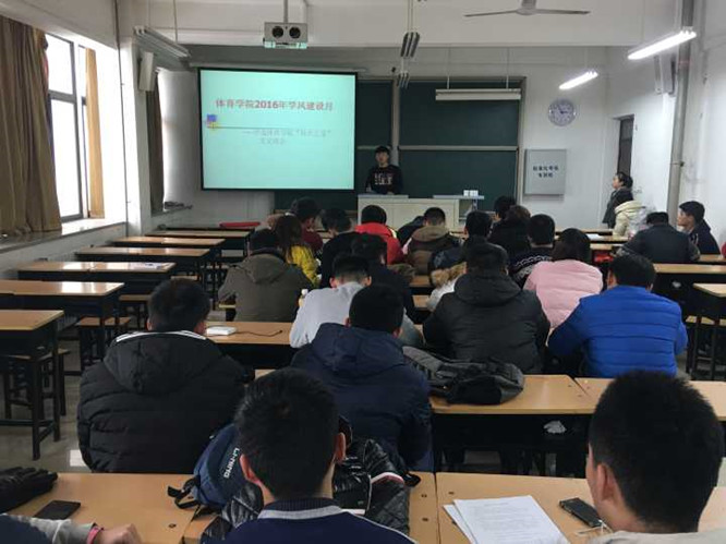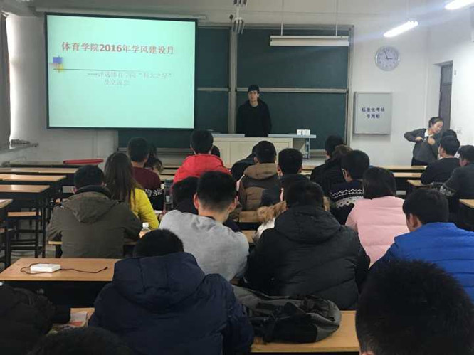 为贯彻落实学校《关于开展河南科技大学2016年度‘科大之星’评选活动的通知》,并结合体育学院学风建设月活动安排,我院于 2016 年 11月27日 下午16:00,在文科2区305教室开展了2016年体育学院“体院之星”评选活动。体育学院党委副书记杨洪老师、体育学院学工办主任高国军老师和体育学院15级辅导员陈勃源老师出席此次评选会议。体育学院学生会主席杨振国同学及2016级全体学生参加本次会议。