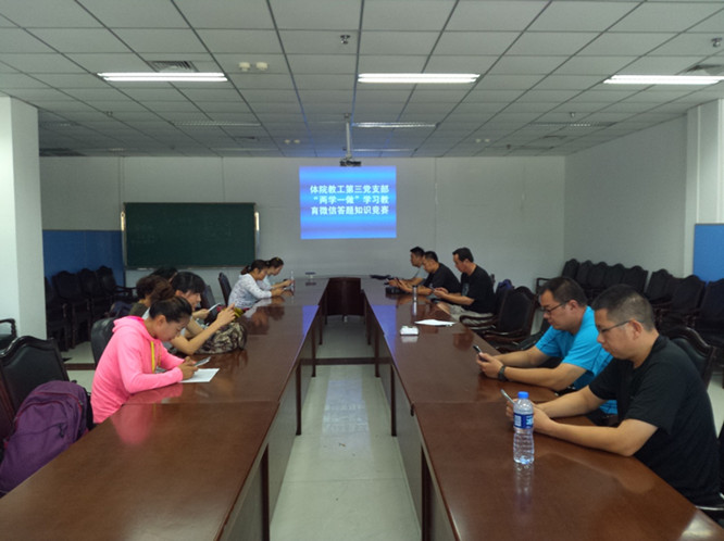 6月22日15:00,体育学院教工第三党支部在图书馆113室举行“两学一做”微信答题竞赛。会上,党支部书记常志良传达了河南省委高校工委《关于举办全省高校党建工作暨“两学一做”学习教育微信答题知识竞赛活动的通知》的精神,然后讲解了答题的程序和要领。答题结束后,常志良要求全体党员要充分利用新媒体延续学习党的知识的精神和态度,全面学习“两学一做”重要内容,时刻用党的先进理论武装头脑,提高自身政治素养和党性修养。