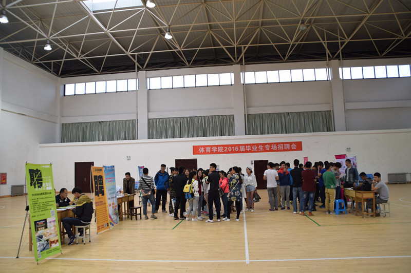 为帮助我院2016届毕业生成功就业,找到适合自己的工作岗位。体育学院于5月12日下午在风雨操场篮球馆举办体育学院2016届专场招聘会。此次招聘会共有五家公司应我院邀请参加:洛阳世纪英豪体育健身有限公司、青出于篮篮球训练营、洛阳琳达东方教育咨询有限公司、洛阳众联体育有限责任公司、乐多体智教育中心。