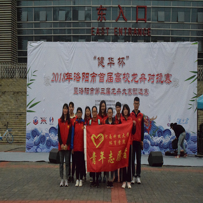 河南科技大学体育学院青年志愿者协会20名志愿者在早上8点就开始从学校出发,赶赴龙舟赛场。到达地点后,志愿者共分为三组,器械组协助参赛龙舟出发以及赛后整理;编排组协助裁判统计分数、排名次;检录组协助裁判员召集队员等。在运动员检录处,在比赛起点、终点处,在运动员休息点……总能看到一群身穿红马甲的身影在忙碌着,他们有一个共同的名字——志愿者。