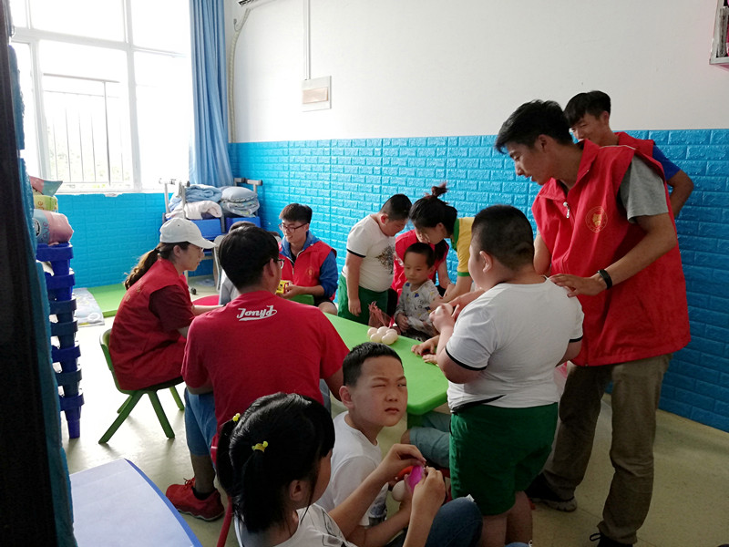 2018年6月1日,由体育学院党员、明德班成员组成的志愿者前往国际馨翼教育中心与“来自星星的孩子”(自闭症儿童)共度儿童节。