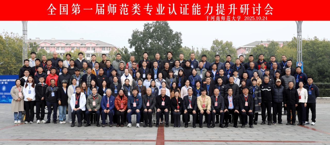 2025年10月23-26日,全国首届“师范类专业认证能力提升”研讨会在河南师范大学成功举办。本次会议在中国高等教育学会指导下,由中国高等教育培训中心与中国高等教育学会体育专业委员会联合主办,河南师范大学体育学院、首都体育学院教师教育研究中心共同承办。中国高等教育学会体育专业委员会理事长李鸿江教授、河南师范大学副校长宋晔等领导出席开幕式并致辞。开幕式由中国高等教育学会体育专业委员会副理事长兼秘书长骆秉全教授主持。本次培训班聚焦“师范类专业建设质量提升”核心议题,特邀业内权威专家带来五场主题报告。来自全国各个地区45所高校的100余人参与了本次研讨会的学习,我院一行在院长杨洪的带领下积极参加学习。
